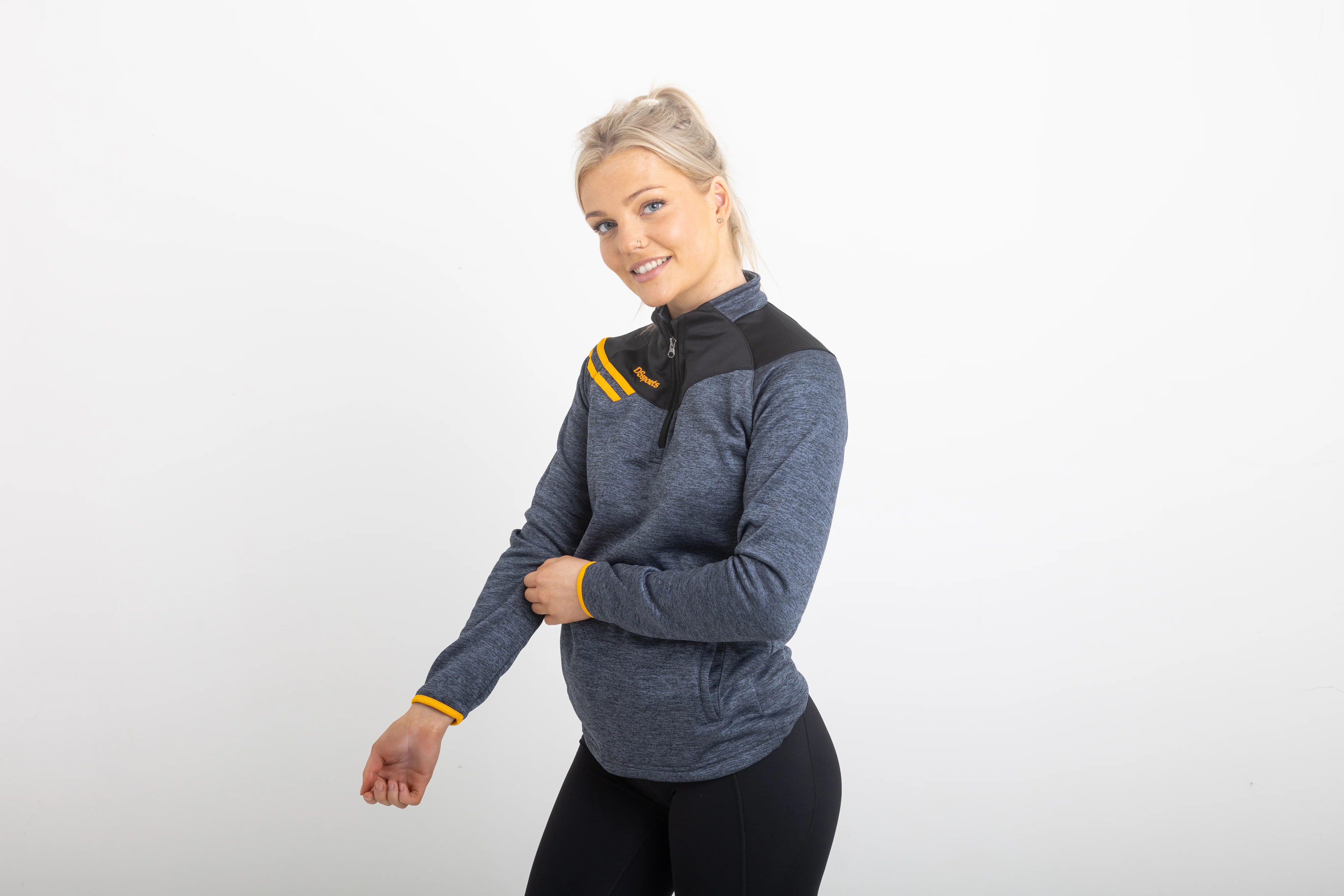 Our Razor Half Zip is the ultimate layer for training or leisure. A polyester fabric lined with a soft cotton fleece helps keep you warm and dry, even in the most demanding conditions. A quarter length zip that functions as both a vent and standard pullover, this zip is built to tackle every task. A stretchable fit and adjustable cords at the hem gives you maximum flexibility when you train or play. DSsports logo on shoulder area.